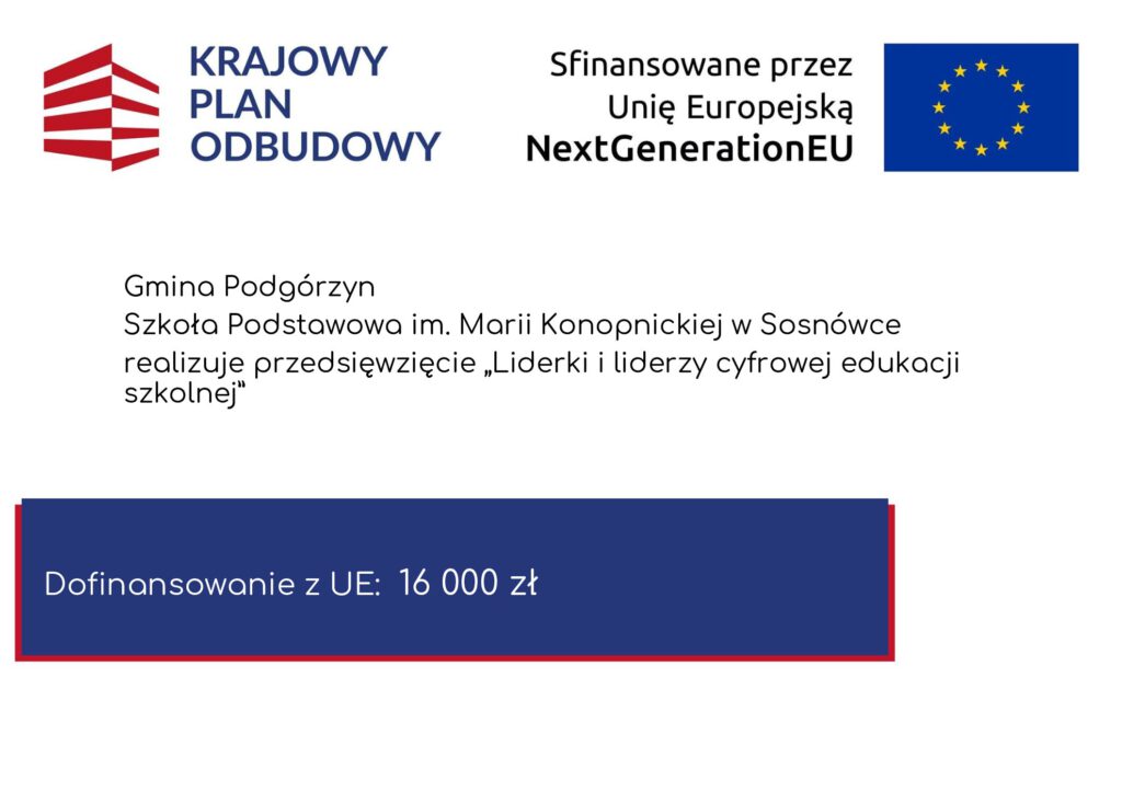 Ruszają zapisy do szkoły i przedszkola na rok 2026/2027, szczegóły w zakładce rekrutacja, zapraszamy do kontaktu – tel. 757610703. Zachęcamy do bliższego poznania naszej placówki podczas drzwi otwartych 24.02.2026r. (wtorek) w godzinach 16.00- 18.00 ul. Szkolna 5 Sosnówka.